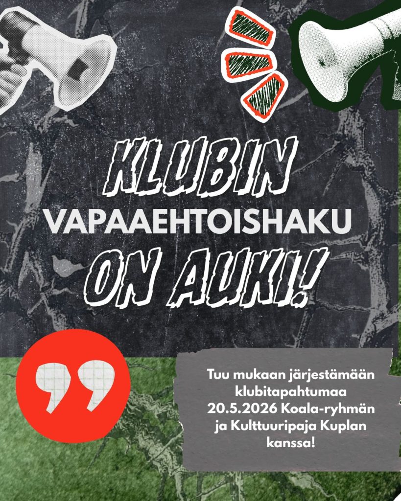 Tule mukaan Koalan tapahtumatuotannon ryhmään ja järjestämään klubeja!